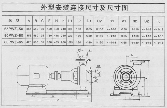 PWZ泵是单级、单吸、悬臂式耐腐蚀的离心污水泵。泵吸入口为轴向水平方向,泵吸出口可根据需要装成水平或垂直方向。