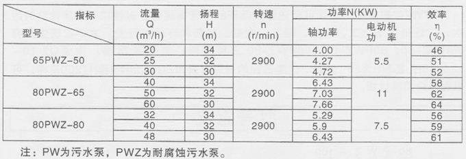 PWZ杂质污水泵可输送温度低于80℃带有酸性、碱性或其它腐蚀性的污水,广泛适用于化工、石油、轻工、食品、制药和环保等行业。其性能范围:流量Q为10~125m3/h:扬程H为10~18m,过流部件的材料有采用ZG1Cr18Ni9和HT200两种。